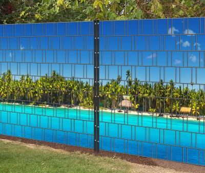 Tropical Panorama XL – Sichtschutzstreifen mit tropischem Design für Doppelstabmattenzäune.