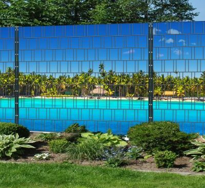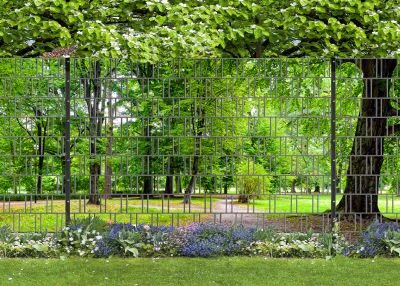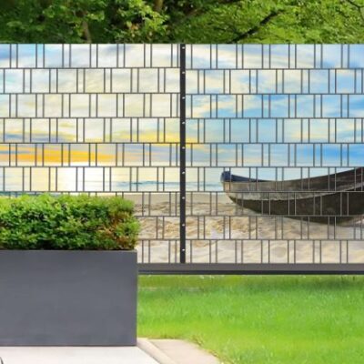 Dekorativer Panorama-Zaunsichtschutz „Park“ im XXL-Format – UV-beständig, wetterfest und blickdicht.