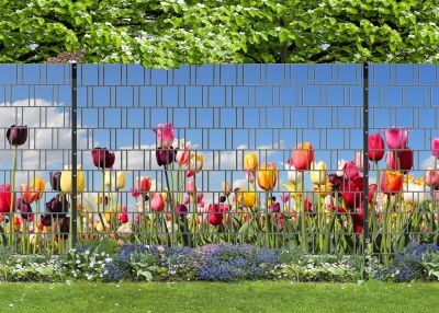 Dekorative Tulpen Panorama XXL Zaunabdeckung – UV-beständig, wetterfest & blickdicht.