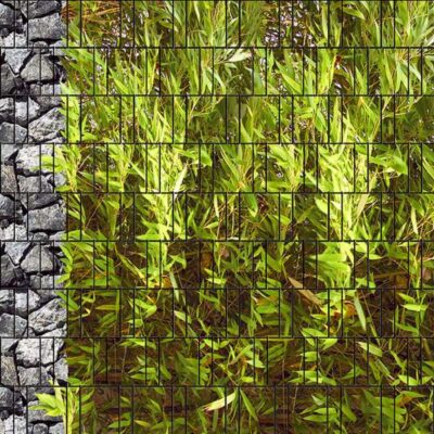 Dekorativer Sichtschutz „Bambus & Bruchstein groß“ – UV-beständig, wetterfest & blickdicht. Natürliches Designmotiv aus Bambus und Steinoptik für stilvolle Gärten.Inhalt: 23,4 lfm (3,85 €/lfm)