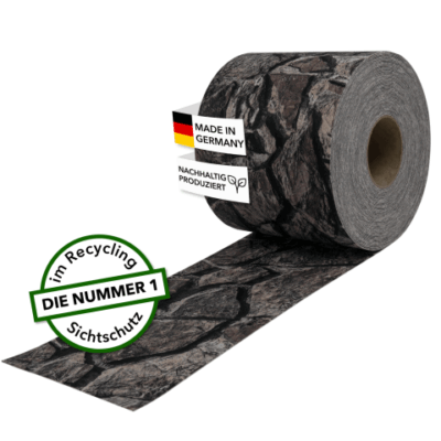 Beidseitig bedruckter Sichtschutz „Naturstein“ – UV-beständig, wetterfest und blickdicht. Ideal für Doppelstabmattenzäune – edle Steinoptik auf robuster 26 m Rolle.Inhalt: 26 lfm (3,08 €/lfm) – Muster gratis!