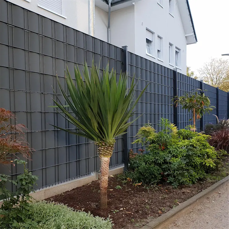 Gefertigt aus robustem, durchgefärbtem Polypropylen (PP) sind die Sichtschutzstreifen UV-stabil, wetterfest und langlebig. Die geprägte, mattierte Oberfläche sorgt für eine edle Optik und hohe Stabilität.