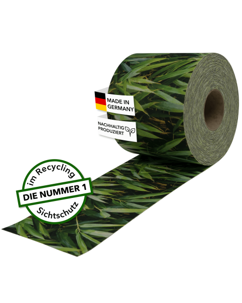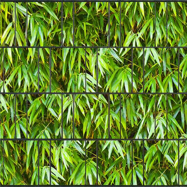 Bambus Blätter – Bedruckter Sichtschutz in natürlicher Bambus-Optik | Beidseitig bedruckte Sichtschutzstreifen für Doppelstabmattenzaun | 26 m Rolle | UV-beständig, wetterfest & pflegeleicht