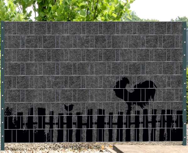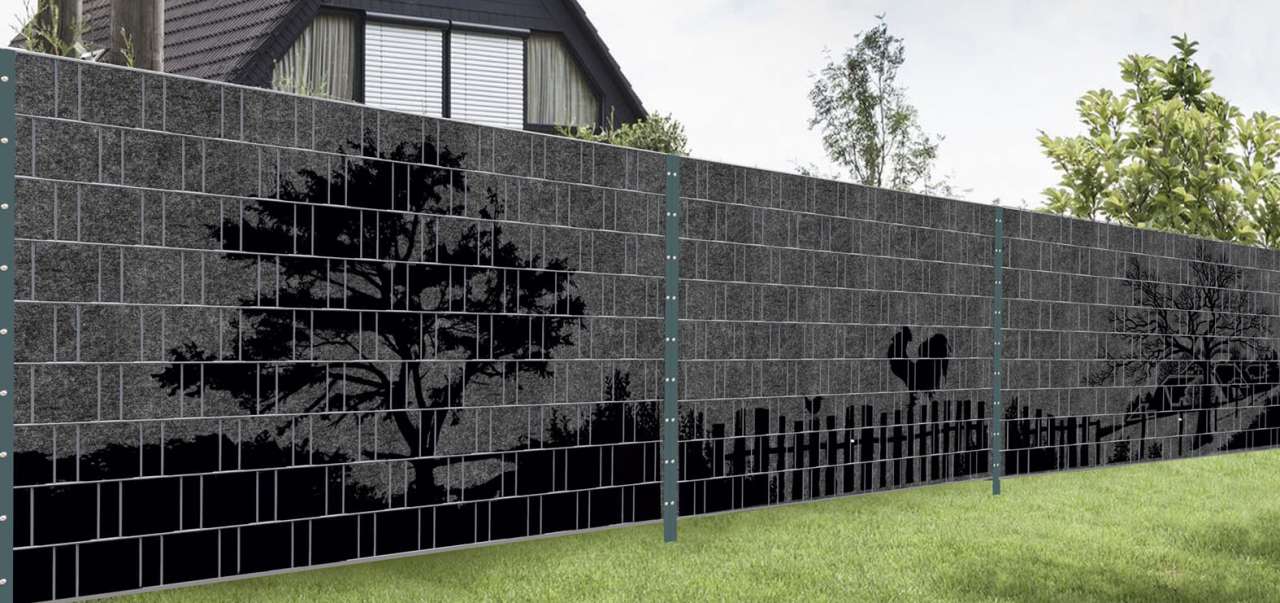 Die Kombination aus anthrazitfarbener Melange-Struktur und feinem Motivdruck sorgt für ein elegantes, zeitloses Design, das sich perfekt in moderne Garten- und Zaunanlagen einfügt.
