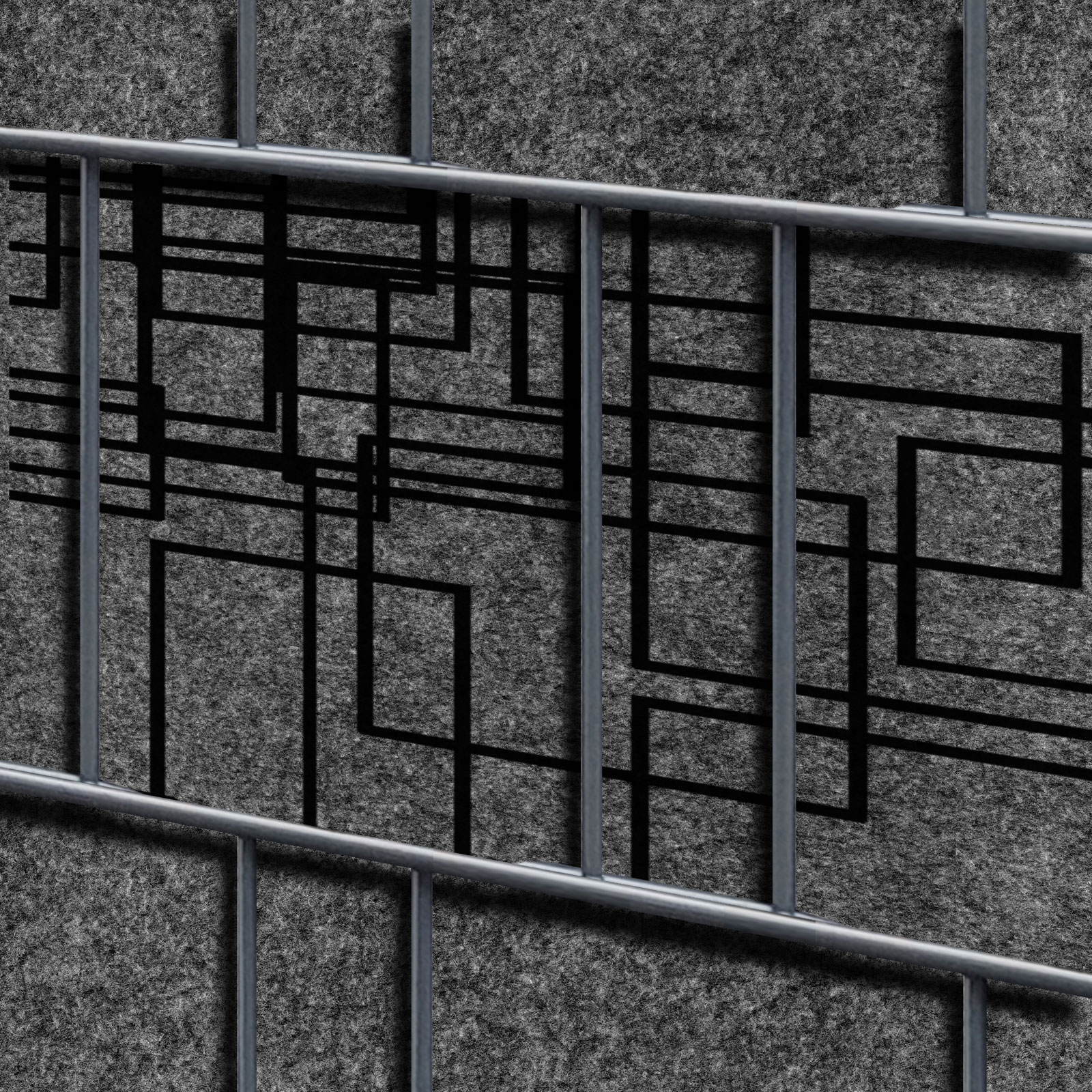 Verleihen Sie Ihrem Zaun ein modernes Erscheinungsbild mit dem Design-Vlies Sichtschutzstreifen „Florenz Squares“.