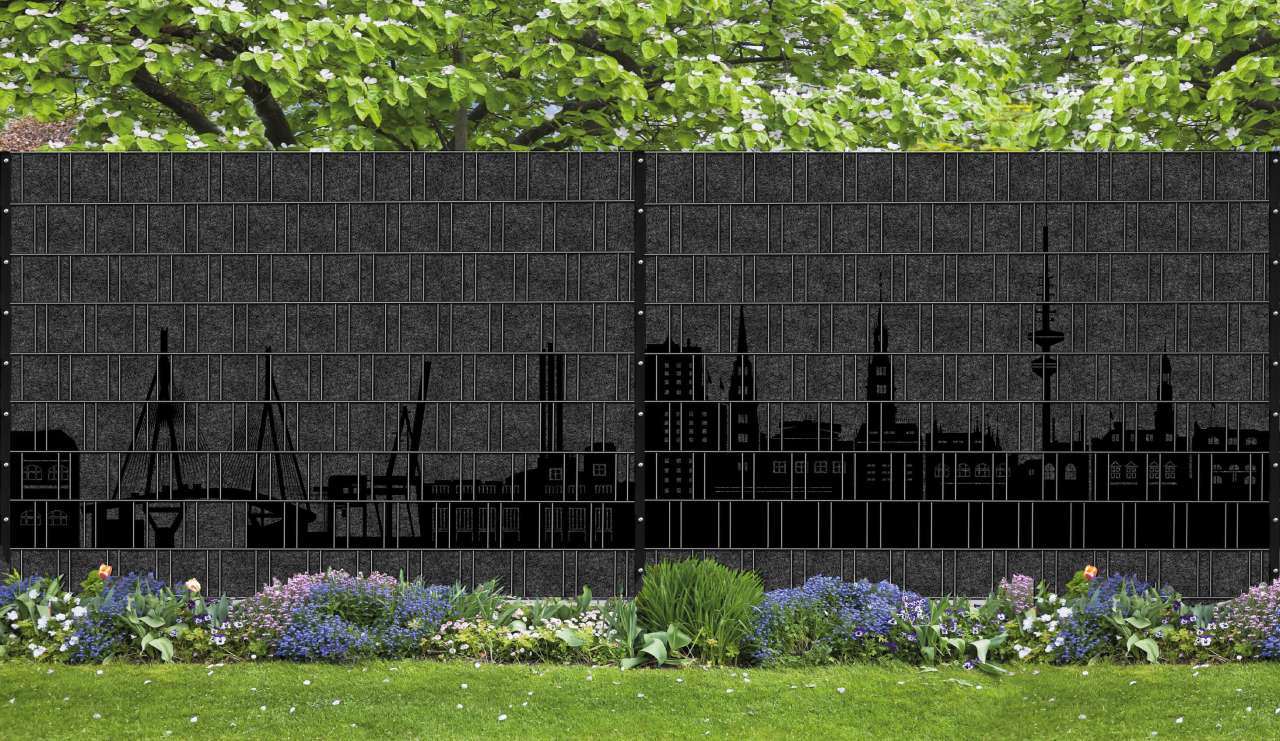 Die bedruckten Sichtschutzpaneele aus hochwertigem Polyester-Gewebe (PES) kombinieren moderne Optik mit funktionalem Sicht- und Windschutz – ideal für Doppelstabmattenzäune in privaten oder gewerblichen Außenbereichen.