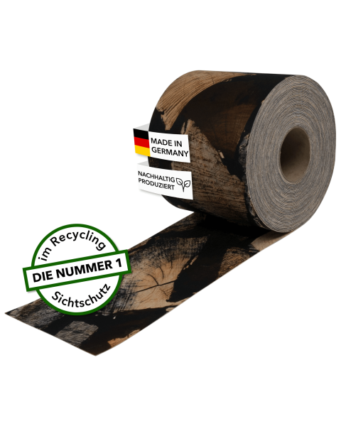 Sichtschutzstreifen „Kaminholz“ – natürliches Holzdesign, UV-beständig, wetterfest & pflegeleicht.