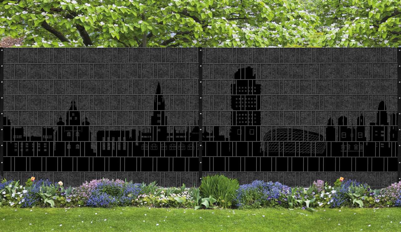 Das München – Panorama XL Motiv bringt urbane Eleganz und ein modernes Stadtbild an Ihren Doppelstabmattenzaun.