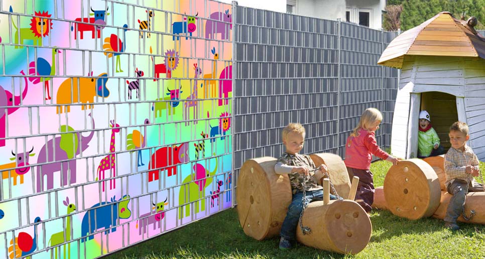 Dieses hochwertige Sichtschutzmotiv zeigt naturgetreue Tierdarstellungen und sorgt für eine dekorative, individuelle Gartengestaltung – ideal für Doppelstabmattenzäune im privaten oder gewerblichen Bereich.