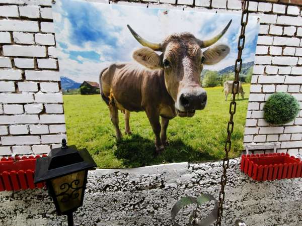 Verleihen Sie Ihrem Außenbereich eine natürliche und lebendige Atmosphäre mit dem Zaunposter & Gartenposter „Kuh“.